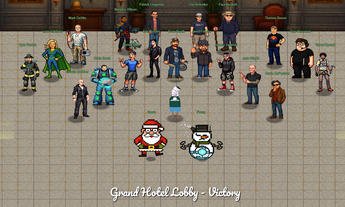 After defeating all objectives, we are teleported to the Grand Hotel Lobby - Victory, where the final piece of the story is unlocked:
